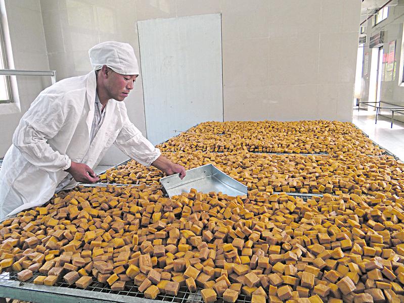 “合作社离我家就100米,吃的住的都不花钱,一个月还能挣2100块钱。”在洛南县洛源镇腰庄村品誉豆制品专业合作社里,村里精准扶贫的包扶对象刘顺民一边翻动着黄橙橙的豆腐干,一边激动地跟记者分享着他能在合作社上班的快乐和感恩之情。