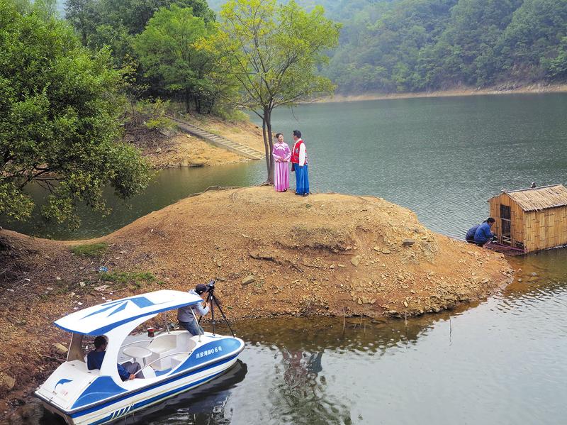 10月9日,央视音乐频道《乐游天下》栏目组在商南县试马水库采集录制陕南民歌,将以“歌传情、人带景”,展现大美山水和民俗风情。(记者 肖云摄)