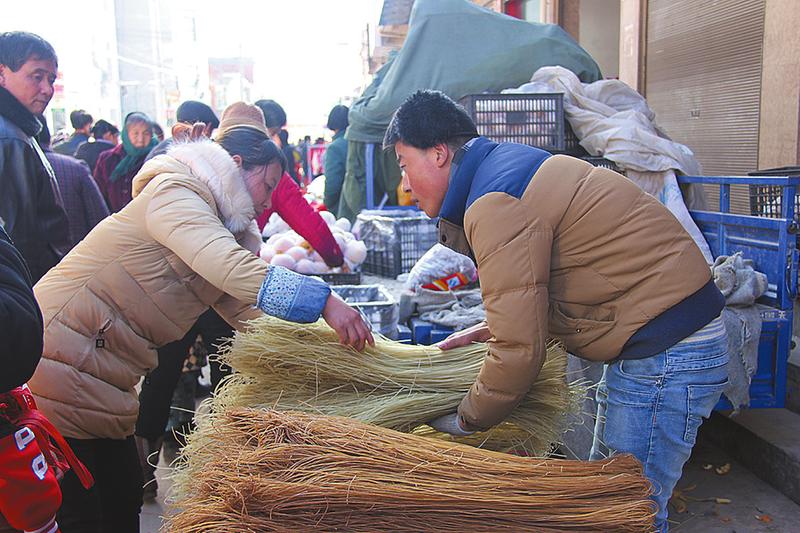 23岁的刘奇是洛南县永丰镇人,他家长年做河南禹县粉条的代销生意。刘奇年纪不大,脑子却很活,几个月前,他就想趁着过年,把粉条拉到商州的集上来卖。以前,刘奇来过大荆,觉得这儿离老家不远,逢集时也很热闹,就把驻点选在这里,并租下一间门面房,专门用来存放粉条、粉带。
