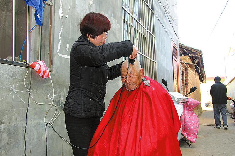 在大荆街道一个不起眼的小巷,记者见到了正在露天地里给人理发的刘粉利。她很年轻,约摸30来岁,与这个简陋的环境似乎有些不搭。但她神情专注,手法熟练,剪刀起落间,碎发纷纷飘扬,没有多一寸,也没有少一寸,在光影的变幻中,竟让人感叹起她的专业与敬业。小巷里,有七八位老人坐在板凳上安静地等候,他们是刘粉利忠实的粉丝,因为她的收费只是其它理发店的一半价钱