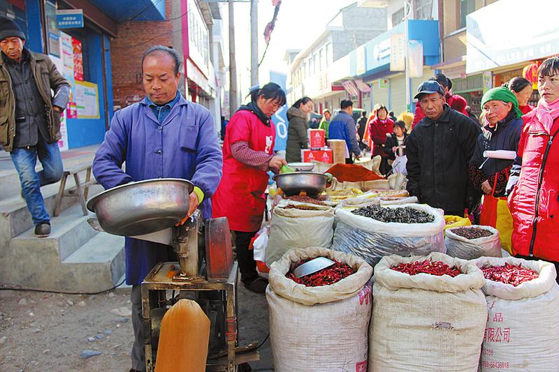 在这个热闹拥挤的集市上,如果你仔细观察,就会发现,有一些摊贩的生意格外红火。卖调料的邵念良就是其中的一员,他的摊子没有闲下来的时候,不是卖摊位上摆放的辣椒、八角、花椒等调料,就是用调料粉碎机现场制作五香粉、辣椒面等,一刻都不停歇。邵念良说,现在还不是太忙,等腊月二十过了,在上海、北京这些大城市打工的人陆续回乡以后,才是真正的忙。他解释说,这些人买调料除了过年时吃,年后还会捎一些带去外地,或者送给工友。
