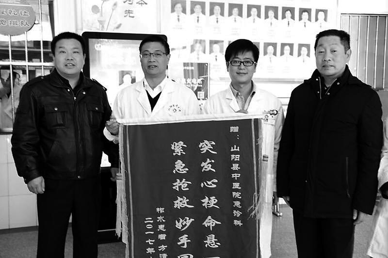 本报讯(崇娅记者董楠)近日,山阳县中医医院一楼大厅比往昔平添了几分温暖和感动,来自柞水某单位的干部方先生将一面红色背景下印着“突发心梗命悬一线紧急抢救妙手回春”的锦旗呈送给院长张水民和急诊医生赵君,对该院急诊科医护人员表示敬意和感激。