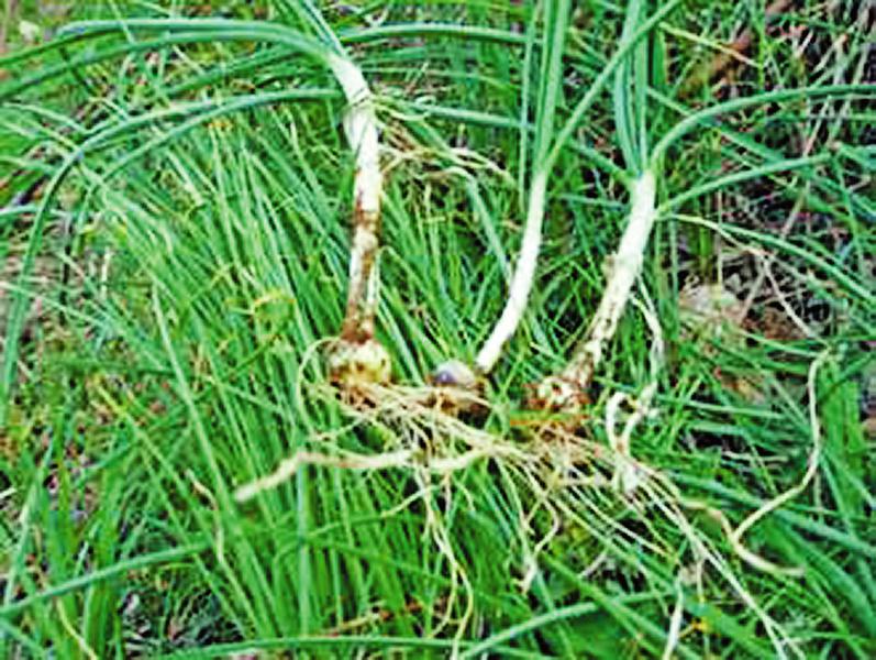 野小蒜遍布于埝旁地畔、房前屋后,哪儿都有。我家小院的月季花根部,便常常探头探脑地伸出一簇它的绿叶。它的身姿往往稀疏且零散,细叶纤柔,线似的,中空,将系着的鳞球状的蒜头,藏在很深的地下。无论是用镢用锄还是用小镰小铲,又无论是怎么小心翼翼地去挖去挑,那细叶总要潦草地散开,加之土里的砂砾啊石块啊等等拘束绊牵,便使那蒜头遍体鳞伤,不是这儿缺了,就是那儿破了,很难整株地挖出来。