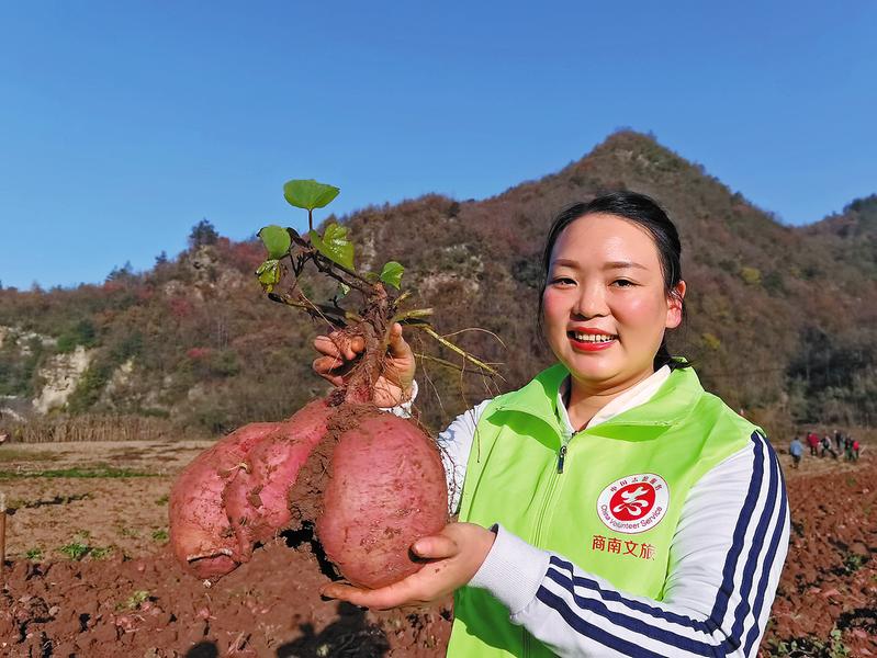 商南文旅绿沁工贸有限责任公司总经理陈晓洁兴奋地说:“我们试种的烟薯25号丰收啦!目前亩产量已达到5000多斤,比本地的红薯产量要高出1000多斤,下一步我们将大面积种植,并将烟薯深加工成便于携带的旅游农特产品,把种植基地打造成乡村旅游体验基地,让游客参与乡村生活,体验挖红薯,推动农旅融合,助力脱贫攻坚和乡村振兴。”