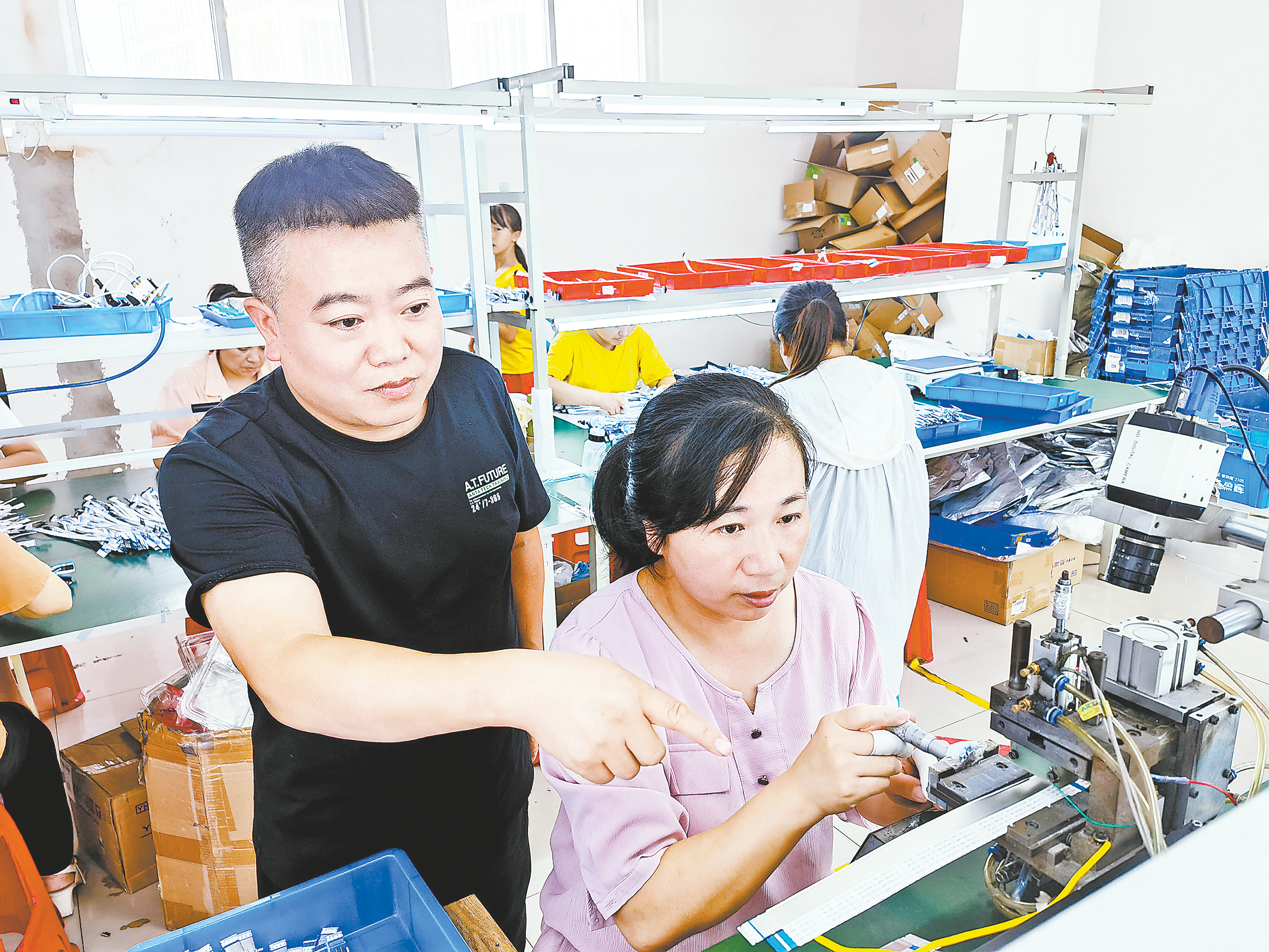 7月21日,走进商南县城关街办金福湾社区的商洛市浩盈辉电子有限公司生产车间,只见工人埋头干活,一派热火朝天的景象。公司负责人吴晓波在车间查看生产情况,不时叮嘱工人应注意的事项。