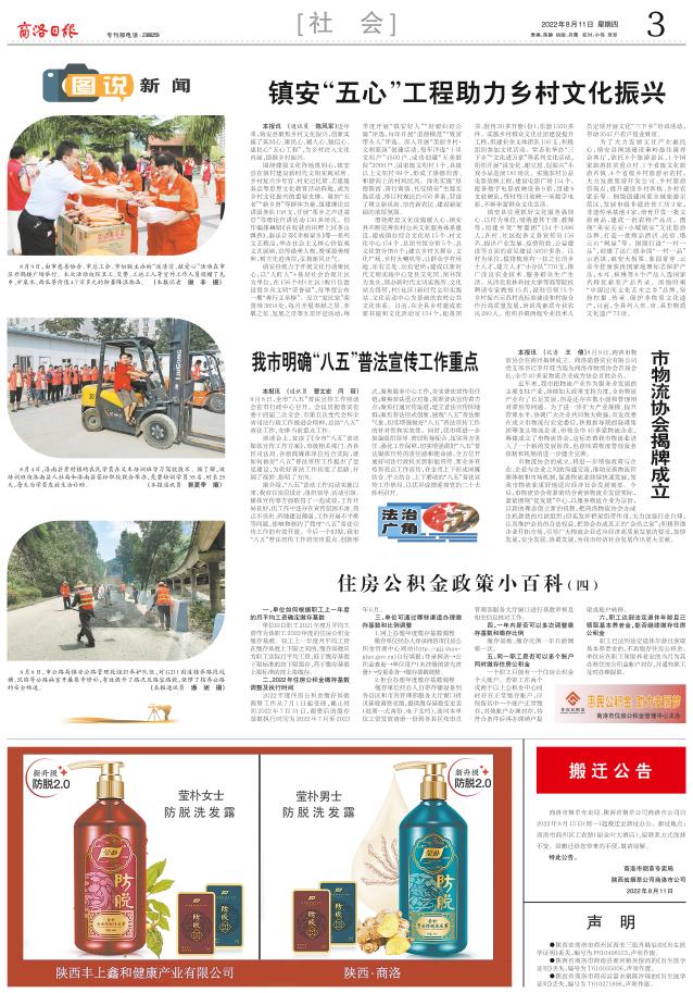 本报讯 (通讯员 陈风军)近年来,镇安县聚焦乡村文化振兴,创新实施了筑同心、聚民心、暖人心、强信心、惠民心“五心工程”,为乡村注入文化内涵,助推乡村振兴。