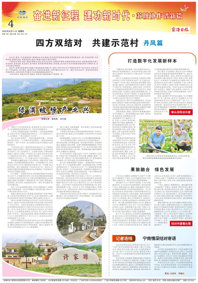 “党建引领,数字赋能。”南京市雨花台区对口帮扶丹凤县联络组组长、丹凤县委常委、副县长薛伟对宁商协作“四方双结对,共建示范村”工作这样进行概括。