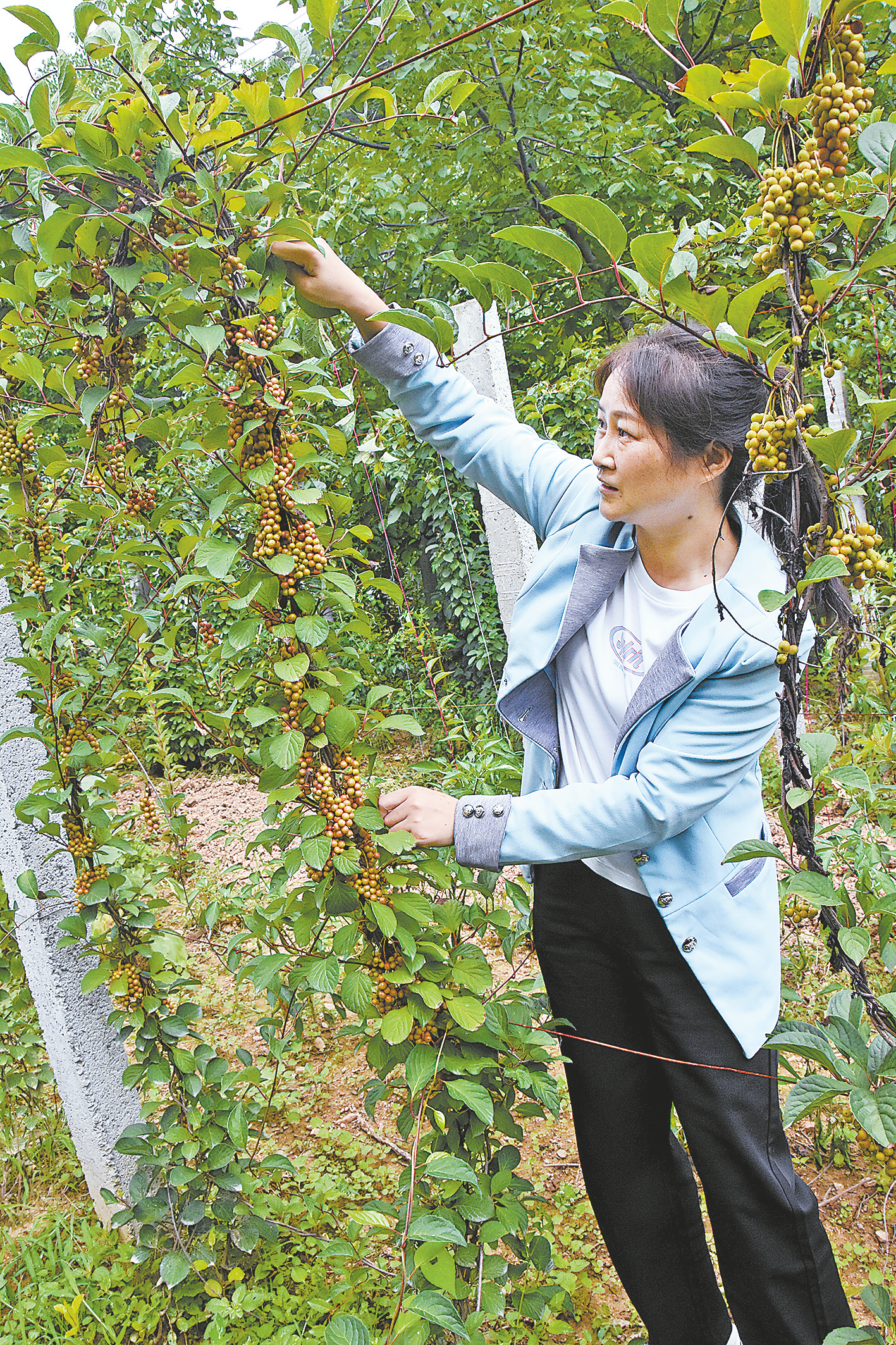 2016年5月,曹月娥将养猪场附近的50亩核桃林地流转,积极发展林下经济,散养鸡年出栏达到1万只。为了减少养殖业带来的面源污染,实现变废为宝,做到物尽其用,2018年3月,曹月娥又流转土地200亩,发展五味子种植基地,实现种养结合,使养猪场的粪便得到了充分运用。