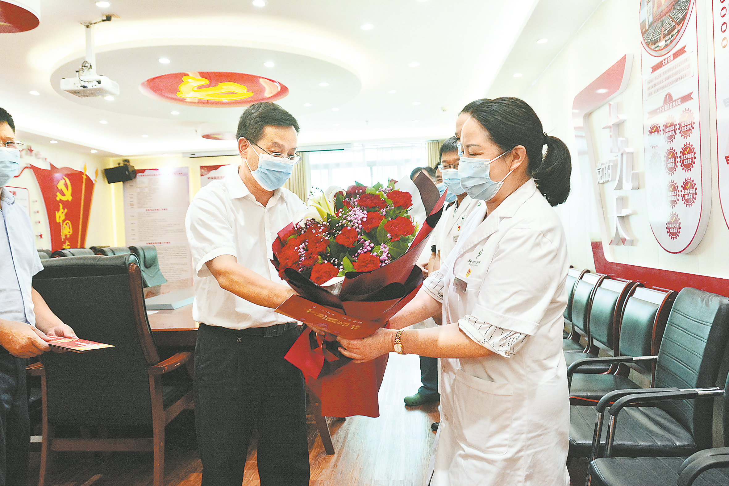 8月12日,在第五个“中国医师节”来临之际,市卫健委党组成员一行深入市级医疗机构慰问一线工作人员。 (本报通讯员 陈培东 摄)