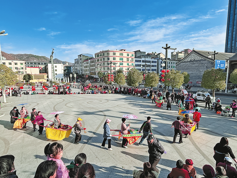 为活跃节日气氛,丰富群众文化生活,让群众度过一个喜庆、祥和、文明、和谐的春节,近日,商南县组织党员群众积极参加社火排练表演活动,迎接新春佳节的到来。(本报通讯员胡朝斌摄)