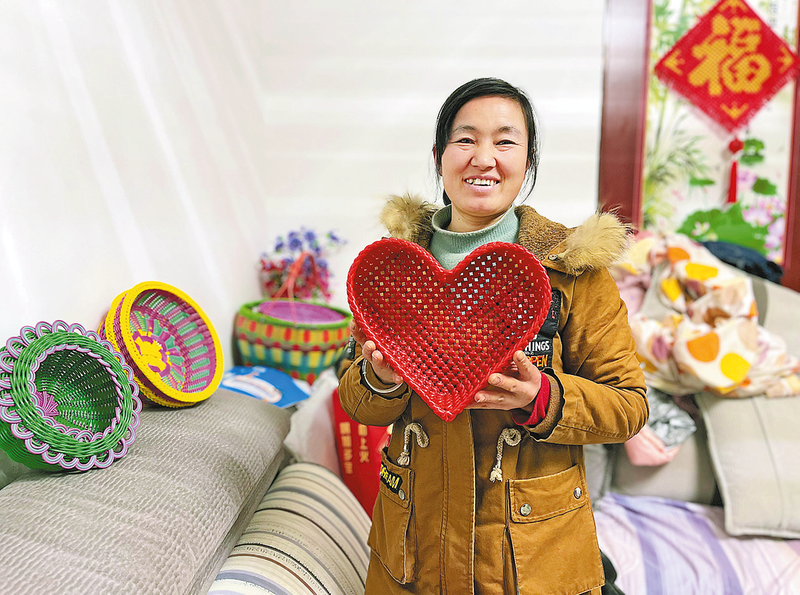 “有次无意间看到网上卖彩色塑料编织条,我咬咬牙花了70块钱,买了编织条、镊子、铁丝、剪刀。”敏锋说,“也是抱着试试的态度,先从简单的花型着手,按照花篮的形状进行编织,没想到编织出来的篮子色彩绚丽,非常美观,拿到市面上很受欢迎。”