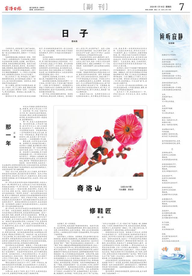 后来我离家在外,也没有再见过他。直到去年回家过年,发现楼下新开了一家店面,进去转转,发现店铺老板竟是那位修鞋匠!他手上的老茧更厚了,眼角皱纹更多了,可眼神却依然充满了坚定和热情。我赫然想起他那句话:人只要努力,日子就能越过越好!