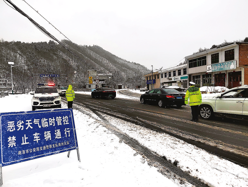 突如其来的大雪,致使312国道牧护关段、242国道黄龙段、洛潼公路石坡段以及包茂高速柞水段等多处道路出现积雪结冰,道路交通运输受到不同程度的影响,交警、路政、高速管理等多个部门及时掌握辖区气象信息和天气变化,开展融雪除冰工作,对路况进行研判,合理实施交通管制,有效管控和消除了可能出现的安全风险。