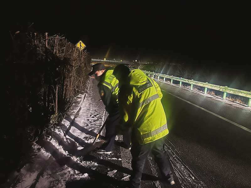据了解,洛南县交管大队15日、16日连续召开恶劣天气应对联席研判会议,积极协调公安、交管、交通、气象等部门协同对接,实现信息共享。同时,利用洛南交警微信公众号和手机短信平台及时发布恶劣天气预警、安全出行提示和实时路况信息。对县域通村客运班线车辆下达停运指令,持续加强对重点路段、重点时段、重点车辆的宣传提示和分流引导,配合道路经营管理单位开展融雪除冰作业。根据道路积雪结冰状况和安全风险等级,先后对242国道黄龙段、洛潼公路石坡段道路实施交通管制。