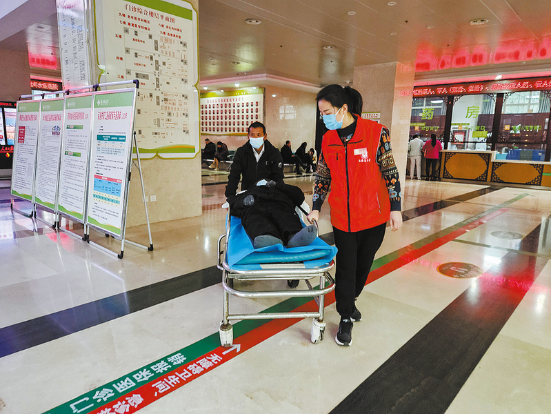1月19日,镇安县医院门诊大厅志愿者正在陪患者作检查。据了解,镇安县医院于2019年开设志愿服务站,截至目前,累计站岗志愿者达100多人,服务5万人次。除院内志愿服务外,志愿者还积极参加院外志愿服务活动,参加义诊活动40多场次,开展慢病、常见病、急救知识宣讲20多次,惠及群众约3000人次。