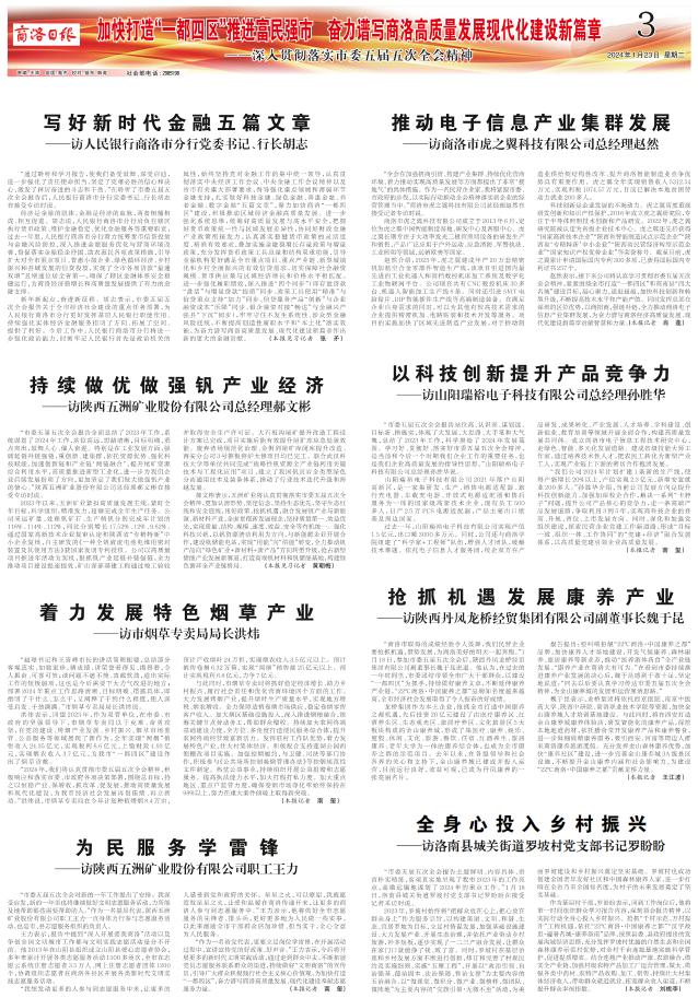 经济是金融的肌体,金融是经济的血脉,两者相辅相成、相互促进。胡志说,人民银行商洛市分行肩负在辖区执行货币政策、维护金融稳定、优化金融服务等重要职责,过去一年里,人民银行商洛市分行着力统筹货币信贷投放与金融风险防控,深入推进金融服务优化与营商环境改善,督促落实金融稳企纾困、助农惠民各项政策措施,引导扩大对全市重点项目、普惠小微企业、绿色循环经济、乡村振兴和县域发展的信贷投放,实现了全市各项贷款“量速双增”且增速位居全省第一,确保了辖区金融体系安全稳健运行,为商洛经济稳增长和高质量发展提供了有力的金融支撑。