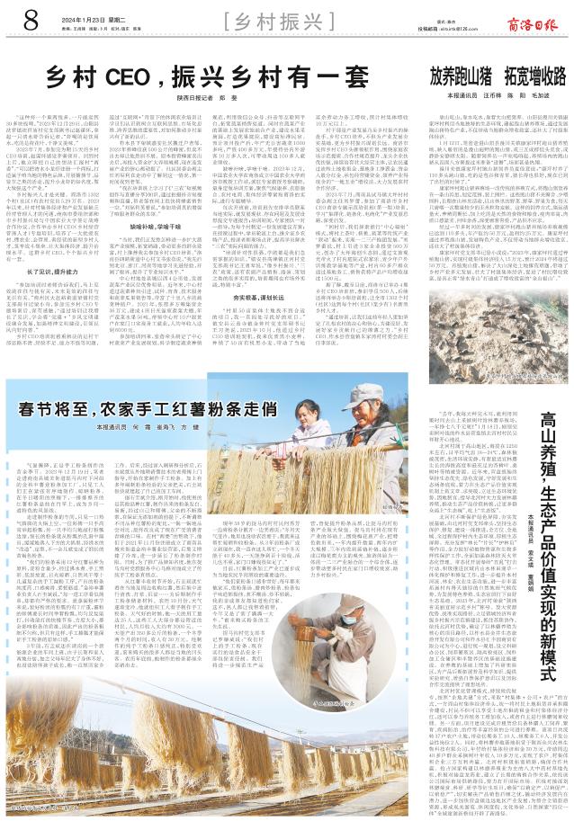 乡村振兴人才是关键。商洛市1302个村(社区)有农村党员5.29万名。2023年以来,针对村集体经济和产业发展缺乏经营管理人才的问题,商洛市委组织部和市乡村振兴局与中国农业大学签订战略合作协议,合作举办乡村CEO(乡村经营管理人才)专题培训,培养了一大批爱农村、懂农业、会管理、善经营的新型乡村人才,筑牢战斗堡垒、壮大集体经济、提升治理水平。这群乡村CEO,个个振兴乡村有一套。