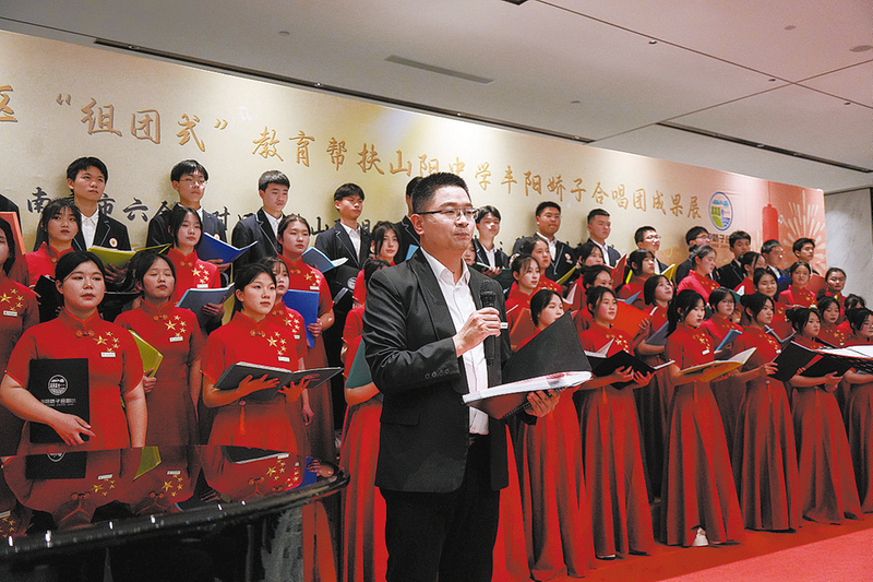 “高高的青山上,萱草花开放,采一朵,送给我,小小的姑娘。”“在茫茫的人海里,我是哪一个,在奔腾的浪花里,我是哪一朵。”“这世界有那么多人,人群里,敞着一扇门。”1月16日,南京市六合区“组团式”教育帮扶山阳中学丰阳娇子合唱团成果展暨陕西省山阳中学2024新年合唱音乐会在山阳县举办。音乐会现场,学生们用优美动听的旋律,分感恩有你、幸生你怀、青春色彩三个篇章表达了对南京“组团式”帮扶团队无私奉献的感恩之心,以及对青春梦想、美好未来的无限憧憬。这场音乐会的举办,也完成了支教老师郭军辉和学生们的一个约定。