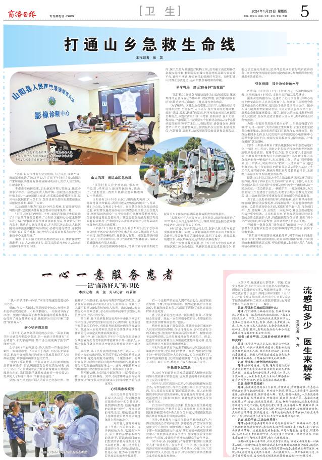 “我们把30分钟急救圈建设作为打造紧密型县域医共体的重要内容,严格标准、细化措施,强力推动镇(街道)急救站建设。”山阳县卫健局局长龚忠涛说。