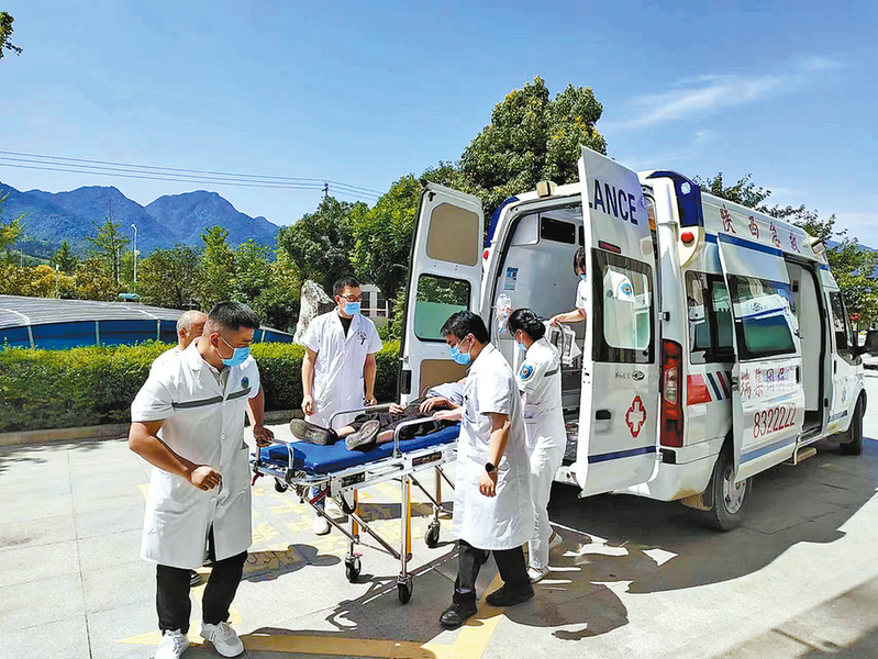 “目前,我们在西照川、中村、高坝店等镇卫生院设置了6个医共体分院急救站。”山阳县卫健局办公室主任郭生红介绍,“在接到急救信息或急救指令后,急救站5分钟内发车,抵达后实施现场救治,并向医共体总院县人民医院或县中医医院报告现场情况,必要时进行增援,总院同步做好院内救治准备,30分钟内完成院前急救与院内五大急救中心无缝衔接。”
