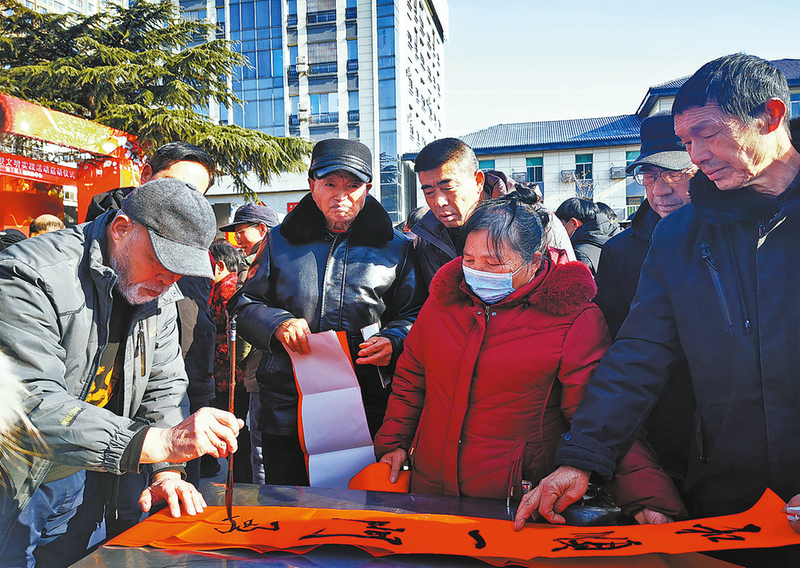 一月二十五日,由市委文明办、市文联、市慈善协会、商洛职业技术学院、商州区纪委监委主办的“我们的中国梦·文化进万家”迎春送福义写春联文明实践活动在市区戏曲文化广场举行。活动现场墨香四溢,百余名书法家和书法工作者共义写春联两千多副,为大家送去新春祝福。 (本报记者 肖 莲 摄)