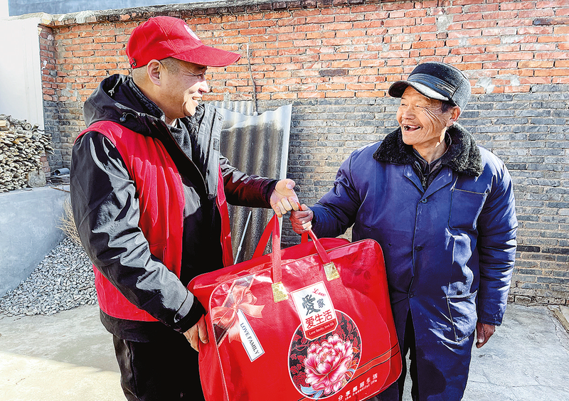 △1月24日,西安市助老爱幼公益慈善基金会联合商州区大荆镇老年协会、西安森泊达橡胶有限公司在大荆镇口前村、孟村、乾佑村等地开展关爱孤寡老人与困境儿童慈善活动,为他们送去米面油、棉被、棉衣、洗漱用品、护眼学习灯等物品。