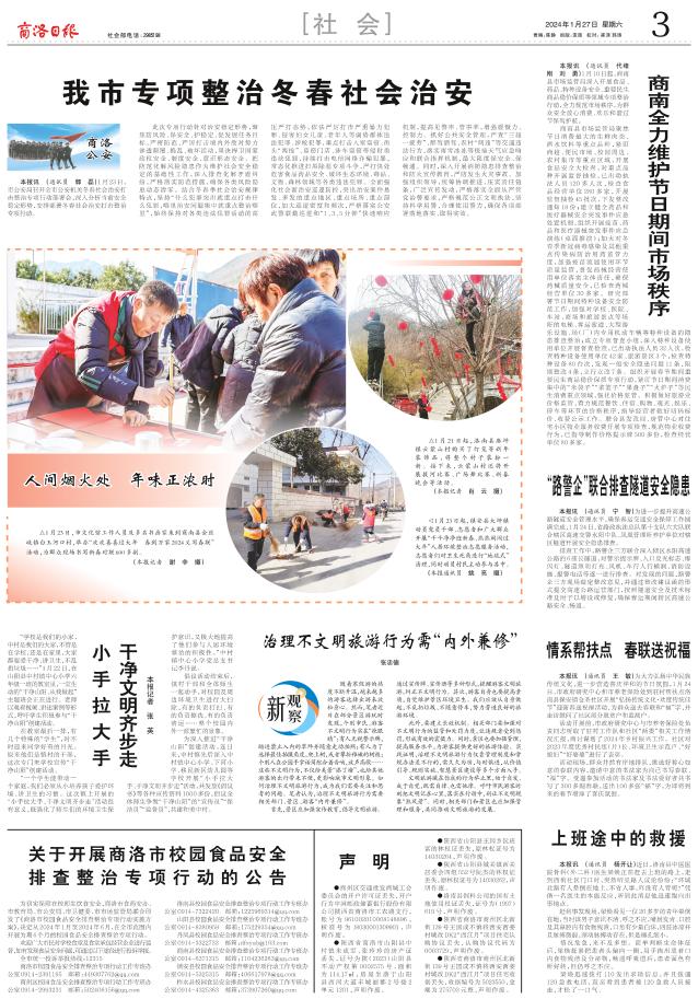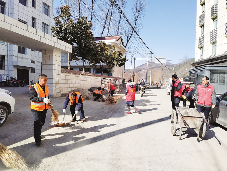 ◁1月23日起,镇安县大坪镇动员党员干部、志愿者和广大群众开展“干干净净迎新春、热热闹闹过大年”人居环境整治志愿服务活动,志愿者们对卫生死角进行“地毯式”清理,同时动员村民主动参与其中。 (本报通讯员 姚 亮 摄)