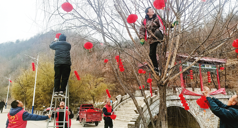 △1月21日起,洛南县麻坪镇云蒙山村购买了灯笼等新年装饰品,将整个村子装扮一新。接下来,云蒙山村还将开展拔河比赛、广场舞比赛、新春晚会等活动。 (本报记者 肖 云 摄)