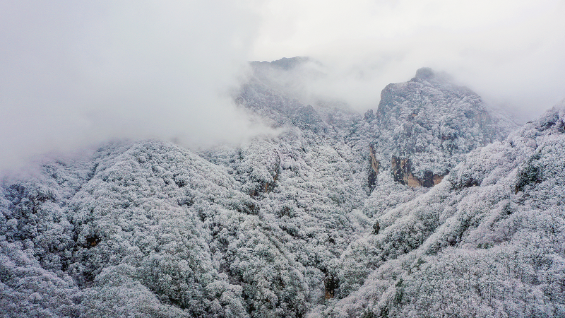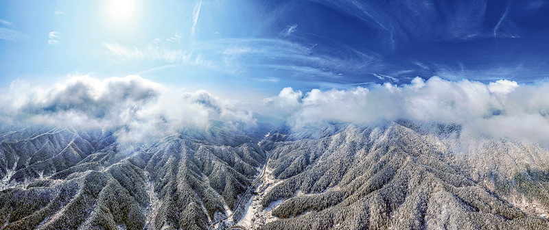 2月24日,商州区与柞水县相邻的鸡冠岭上云雾缭绕,白雪皑皑,犹如仙境。 (本报记者 杨 鑫 摄)