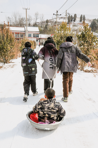 2月23日,在洛南县景村镇景村街社区,孩子们在尽情地享受着冬日里的快乐时光。(本报通讯员 郭夏季 摄)