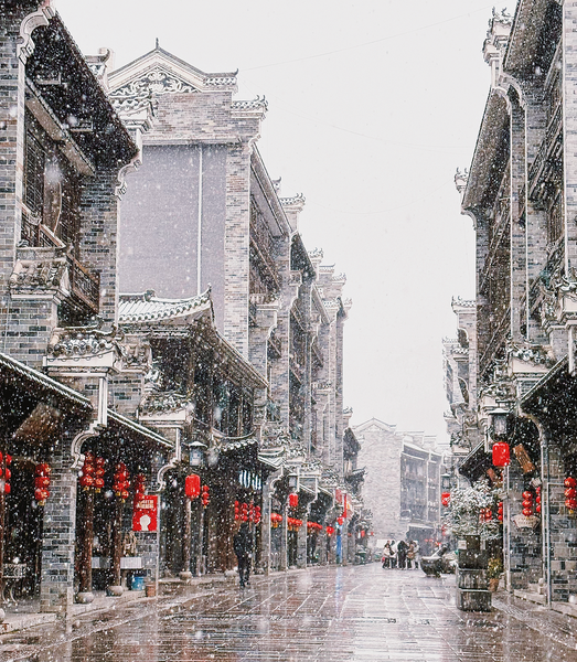 2月22日,风雪中的山阳县漫川古镇别有一番风情。 (本报通讯员 陈丰武 摄)