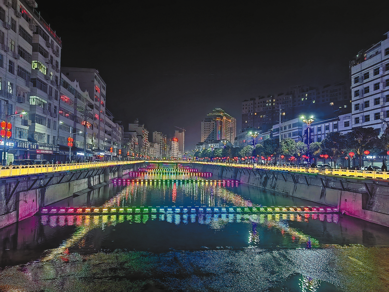 夜幕降临,华灯绽放,镇安县城处处流光溢彩。近年来,镇安县在大力实施道路硬化、绿化、美化工程的同时,积极推进夜景亮化工程,取得显著成效,受到市民广泛赞许。 (本报通讯员 樊 鹏 摄)
