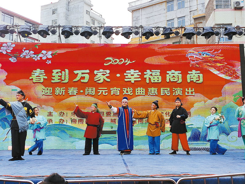 2月24日,春到万家·幸福商南2024“迎新春·闹元宵”戏曲惠民演出活动在商南县城关街道西街安仁门广场举行。演出现场人头攒动,热闹非凡,舞台上,生旦净末丑,扮相各异、五彩斑斓,美轮美奂。演员们以扎实的演唱功底和娴熟的表演技能,将戏曲中的人物、故事演绎得淋漓尽致,充分展现了地方民俗文化的艺术魅力。台下观众喝彩声、掌声不断,精彩纷呈的演出让辖区居民沉浸在浓厚的节日氛围中。此次戏曲演出活动,让辖区居民近距离地欣赏到了原汁原味的地方特色文化戏曲表演,弘扬了中华优秀传统文化,丰富了辖区居民的精神文化生活,营造了喜庆祥和、健康文明的节日氛围。