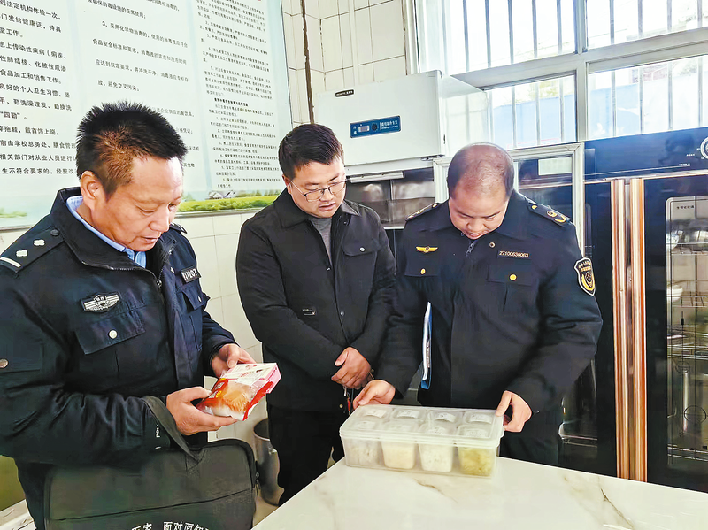 二月二十八日,镇安县达仁镇联合市监所、派出所等单位,开展春季开学食品安全检查,详细检查校园食品加工制作、环境卫生、学校主体责任落实等,牢牢守住校园食品安全底线。