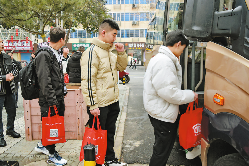 为进一步深化苏陕劳务协作,3月1日上午8时,丹凤县11名新招录的南京辅警踏上就业征程。当地有关部门为他们提供免费专车“点对点”送达目的地,并发放了爱心礼包。 (本报通讯员 贺 甜 摄)