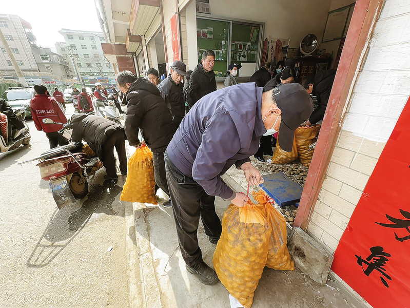 3月2日,种植户正在商州区鑫农粮仓种业科技有限公司购买土豆种子。据了解,春节过后,鑫农粮仓种业公司为春播调运脱毒土豆种子,这批土豆种子来自内蒙古,售价为每斤1.8元,与去年价格持平。 (本报记者 王孝竹 摄)