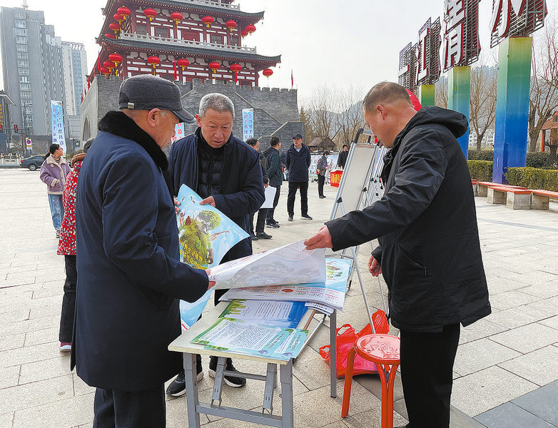3月3日,商洛市野生动物保护站联合商州区野生动物和天然林保护管理中心在市区丹鹤楼广场开展第十一个“世界野生动植物日”宣传活动,向过往市民宣传野生动植物保护相关法律法规,呼吁大家珍爱野生动植物,保护生态环境,争当野生动植物的守护者。(本报记者 方 方 摄)