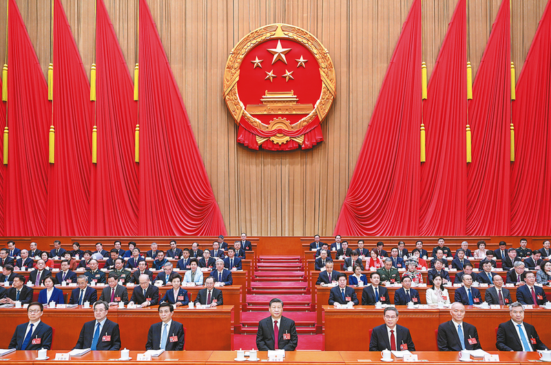 3月5日,第十四届全国人民代表大会第二次会议在北京人民大会堂开幕。党和国家领导人习近平、李强、王沪宁、蔡奇、丁薛祥、李希、韩正等出席大会。 (新华社记者 李学仁 摄)