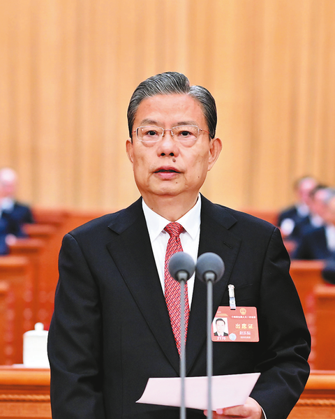 3月5日,第十四届全国人民代表大会第二次会议在北京人民大会堂开幕。赵乐际主持开幕会。 (新华社记者 谢环驰 摄)