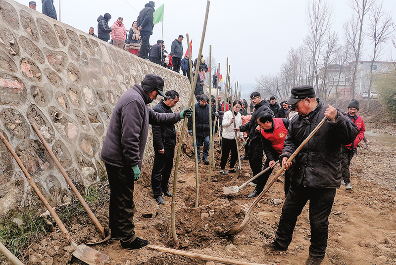 3月5日,洛南县四皓街办在小渠社区小渠川河堤边开展春季全民植树造林活动。干部群众共计200多人参与,栽植柳树1400多株。 (本报通讯员 雷 鸣 摄)