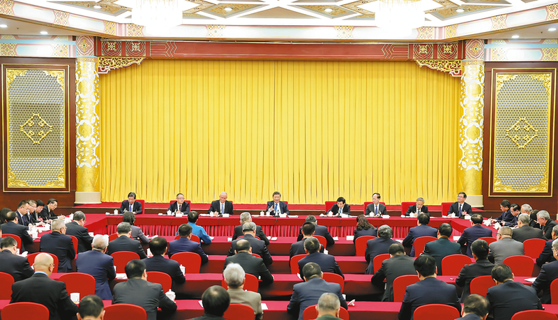 中共中央政治局常委、全国政协主席王沪宁,中共中央政治局常委、中央办公厅主任蔡奇参加看望和讨论。