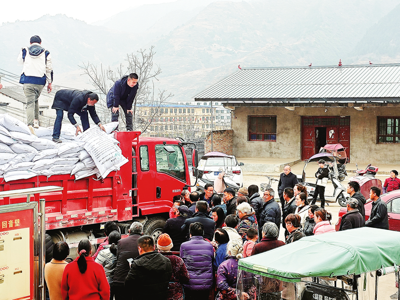 3月4日,丹凤县雄丰生物科技开发有限公司向竹林关镇张塬村村民发放土壤改良有机肥,帮助村民节省种粮成本。据了解,本次共发放有机肥4000多袋,约190吨。 (本报通讯员 苏甜甜 摄)
