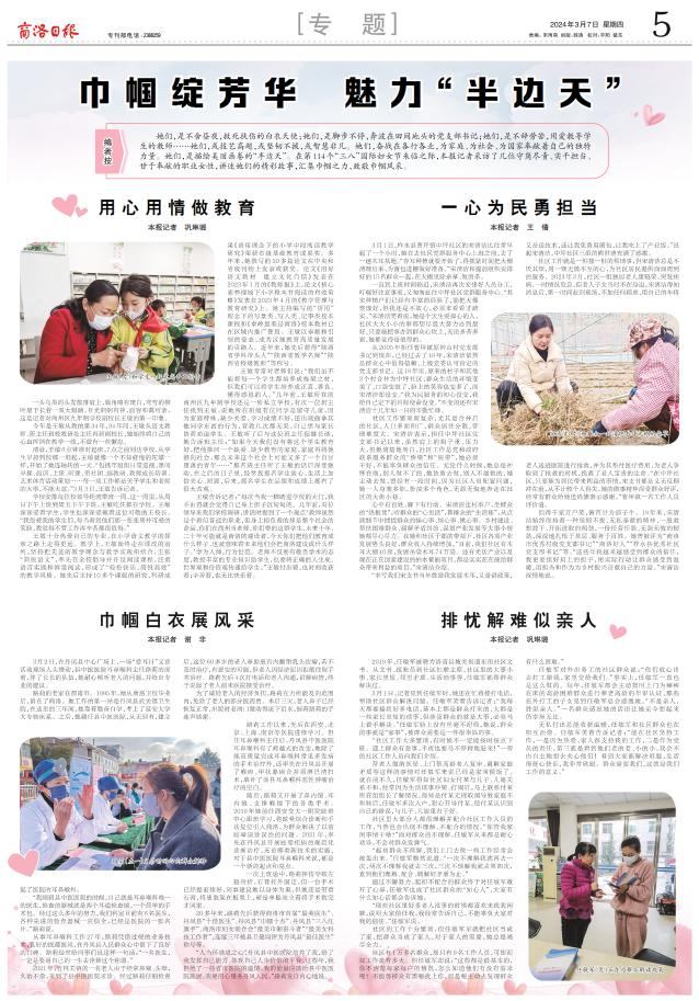 王敏告诉记者:“每次当我一脚踏进学校的大门,我不由得就会觉得自己身上担子沉甸甸的。几年前,有位领导来我们学校调研,讲话时提到了一个观点‘教师虽然是个看似普通的职业,但身上担负着的却是整个社会的命运,你们在商州当老师,你们带的这群学生,未来十年、二十年可能就是商洛的建设者,今天你们把他们教育成什么样子,也就意味着未来他们会把商洛建设成什么样子。’学为人师,行为世范。老师不仅要有敬畏学术的态度,教授丰富的专业知识给学生,也要将正确的人生观、世界观和价值观传递给学生。”王敏付出着,也时刻收获着;辛苦着,也无比快乐着。