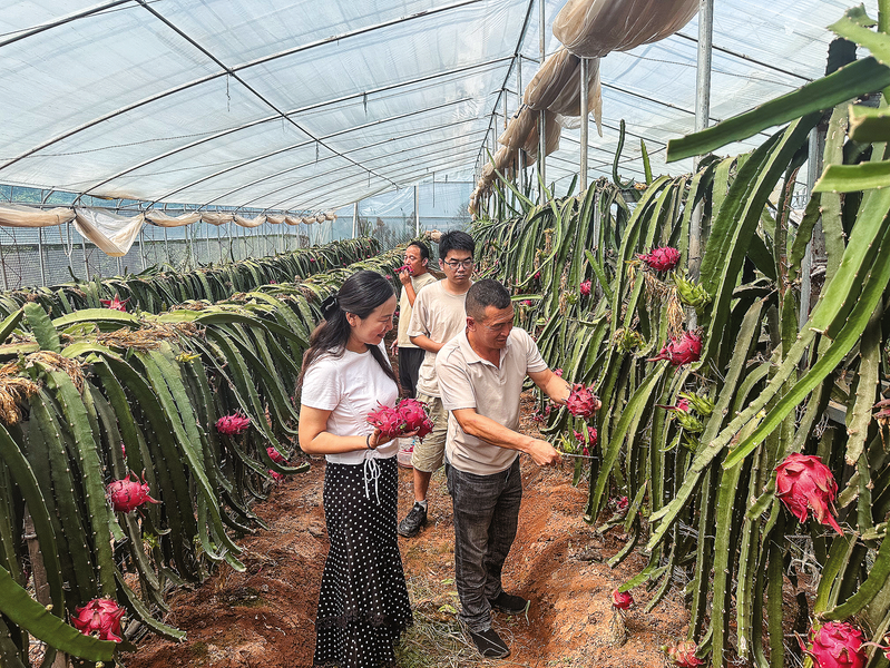 8月18日,在商州区耘夫农业种植专业合作社的火龙果基地大棚里,工作人员正在采收火龙果。据悉,该合作社培育的火龙果年产量1.5万公斤,产值约60万元,带动20多名群众就近就业。