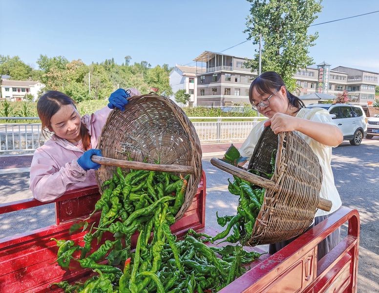 眼下,又到了辣椒采摘期。8月7日,走进洛南县四皓街道抚龙湾社区的洛南县思强农业专业合作社种植基地,放眼望去,一排排大棚鳞次栉比,螺丝椒、线椒挂满枝头,村民忙着采摘、装袋、搬运、过秤、装车,现场一派繁忙的丰收景象。