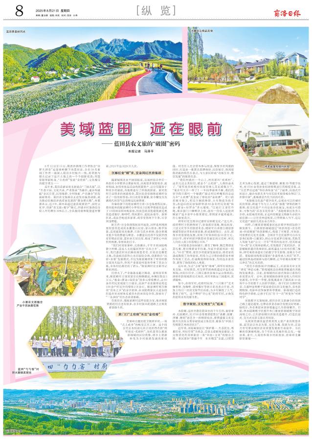 从闲置资源的盘活利用到文旅产业的智慧升级,蓝田县以生态为基、文化为魂、创新为径,正奋力书写着县域经济高质量发展的生动篇章。当沉睡的资源被唤醒,当千年的文化被科技点亮,一幅景美、业兴、人富的和美乡村新图景,在秦岭北麓徐徐铺展……