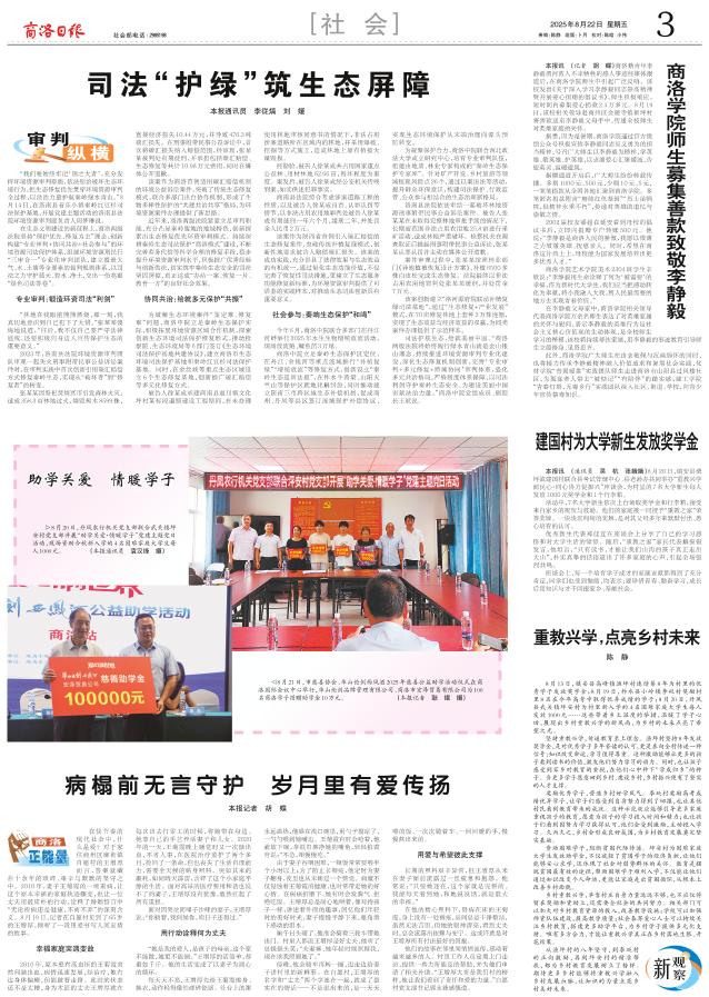 8月13日,镇安县高峰镇渔坪村连续第8年为村里的优秀学子发放奖学金;8月19日,柞水县小岭镇李砭村奖励村里8名在今年高考中取得优异成绩的学子;8月20日,丹凤县武关镇坪安村为村里新入学的4名困难家庭大学生每人发放1000元……这些带着乡土温度的举措,温暖了学子心田,展现出乡村重教兴学的新风尚,为乡村的未来点亮了希望之光。