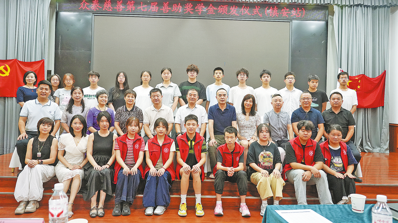 8月24日,陕西众泰慈善基金会第七届善助奖学金颁发仪式在镇安举行,此次共资助了镇安学子13名,发放奖学金共计12.5万元,不仅为家庭经济困难学生送去了物质帮助,更给予了他们精神上的鼓励。受资助学生纷纷表示,将不负嘱托、砥砺前行,以更饱满的热情投入到学习中来,用实际行动回馈学校与社会的关爱。 (本报通讯员 朱龙喻 摄)