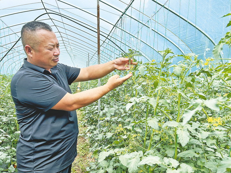 2019年,张平在三要镇建设的西红柿种植基地迎来高光时刻:通过科学管理与品种优化,西红柿年亩产值从1万元增长到2万元,不仅自己赚了钱,还带动周边100多名村民从中受益,他成了洛南县蔬菜市场的“红人”。