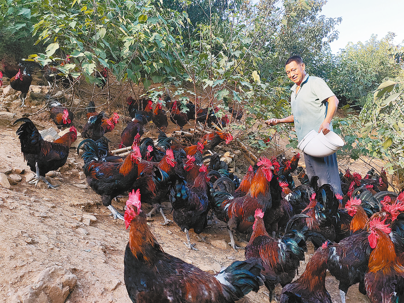 “多亏了村党支部书记母善宏,要不是他带领村上发展产业,并让我负责照看养鸡场,我只怕还没个正经营生。”谈起这份工作,李本山激动地说。为更好地完成这项工作,他每天早上6点起床上山,先把鸡放出来,一日三次喂食喂水,傍晚再给料筒、水桶消毒,有时候半夜还在鸡场巡逻,每天过得非常充实。